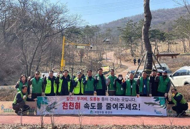 인천광역시 계양구(구청장 윤환)는 산란기를 맞은 두꺼비가 도로를 건너다 죽음을 당하는 로드킬 피해를 방지하기 위해 힘쓰고 있다.