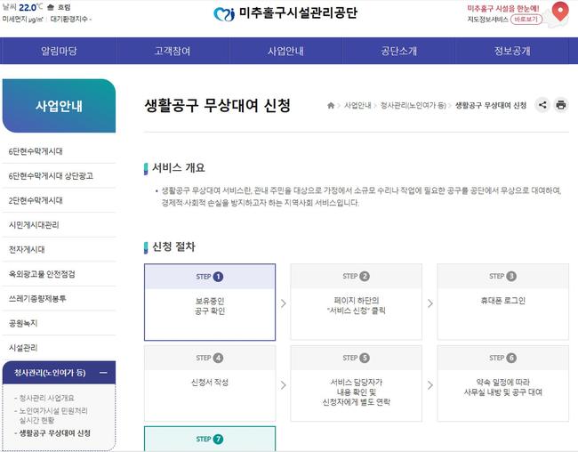 미추홀구시설관리공단, 생활공구 무상대여 온라인 신청 서비스 개시