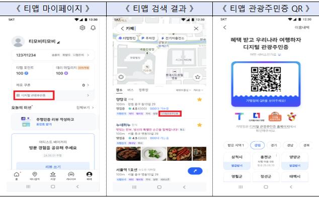 행정안전부는 7월 29일부터 ‘디지털 관광주민증’ 서비스를 티맵 앱에서도 이용할 수 있도록 개방하며, 국민이 자주 사용하는 민간 플랫폼을 통해 인구감소 지역 관광 활성화와 소상공인 지원에 나선다고 밝혔다.