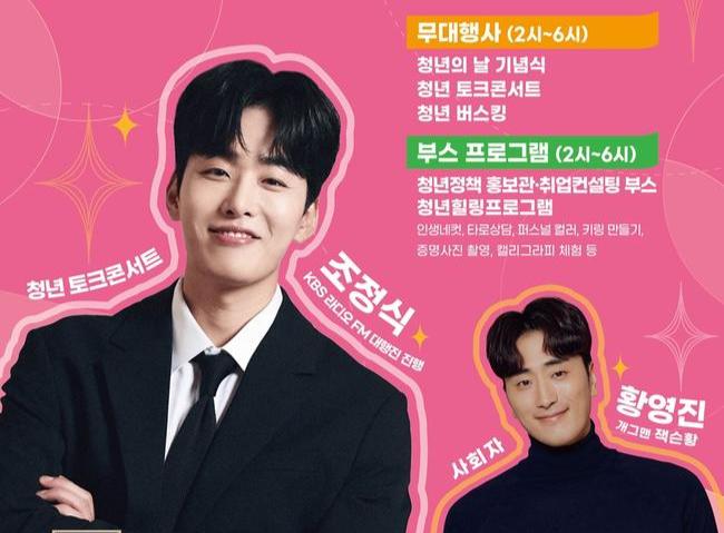 올해 토크콘서트에는 SBS 아나운서 출신 방송인 조정식이 참여해 꿈을 이루기 위한 노력과 경험을 주제로 연수구 청년들에게 들려주고 싶은 이야기와 청년 고민 상담 등 진솔한 이야기를 나눌 예정이다.