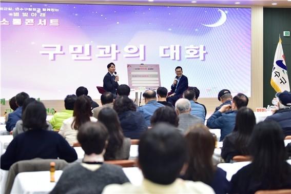 이번 행사는 평소 구정에 참여하기 어려운 구민들을 위해 평일 저녁 퇴근길 콘셉트 형식으로 마련된 소통 콘서트로, 온오프라인 공개모집을 통해 사전 신청한 구민 100여 명이 참석한 가운데 진행됐다.