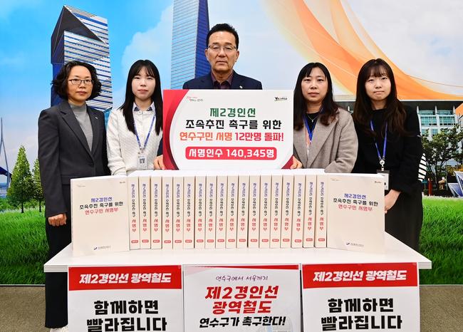 연수구(구청장 이재호)가 지난달 14일부터 실시한 `제2경인선 광역철도망 건설 촉구 12만 연수구민 서명운동`이 지난 15일 자로 목표를 초과 달성했다.