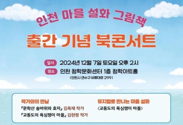 인천광역시(시장 유정복)는 내달 7일 인천 마을 설화 그림책 `교동도의 욕심쟁이 마을`과 `문학산 술바위와 효자`의 발간 기념 북콘서트를 청학아트홀에서 개최한다고 밝혔다.