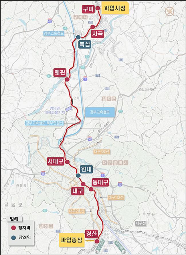 • 구미-대구-경산 간 61.8km 노선 운행 시작