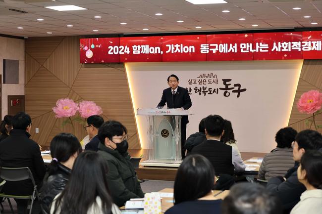 인천 동구(구청장 김찬진)는 지난 23일 구청 소나무홀에서 직원, 사회적경제기업, 주민과 `함께on, 가치on` 행사를 개최했다고 밝혔다.