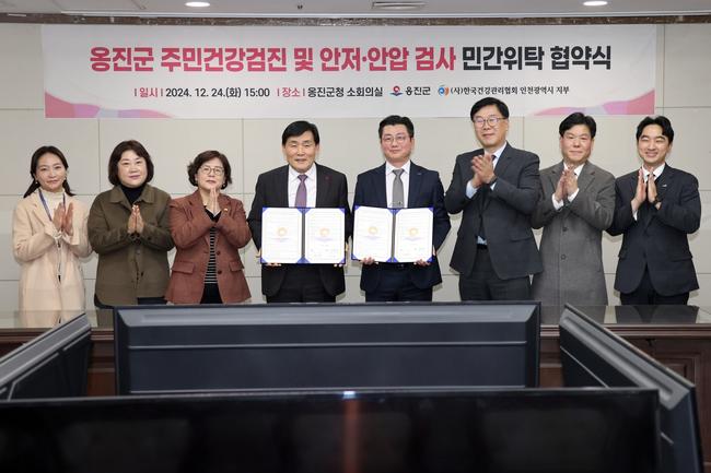 옹진군(군수 문경복)은 지난 24일 한국건강관리협회 인천광역시지부와 주민건강검진 및 안저·안압검사 위탁협약을 체결했다.