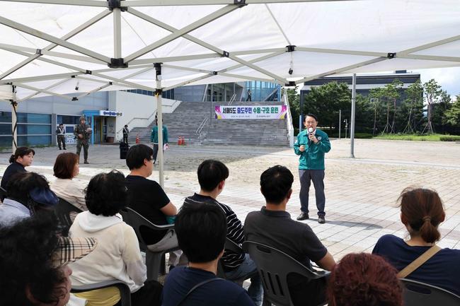 인천 동구(구청장 김찬진)는 지난 20일 송림체육관에서 `서해5도 출도주민 수용·구호 훈련`을 성공적으로 마무리했다고 밝혔다. 훈련에는 김찬진 동구청장, 507여단 1대대장 등 주요 기관장들이 참석했고 중부경찰서·중부소방서 등 유관 기관과 합동으로 진행됐다.